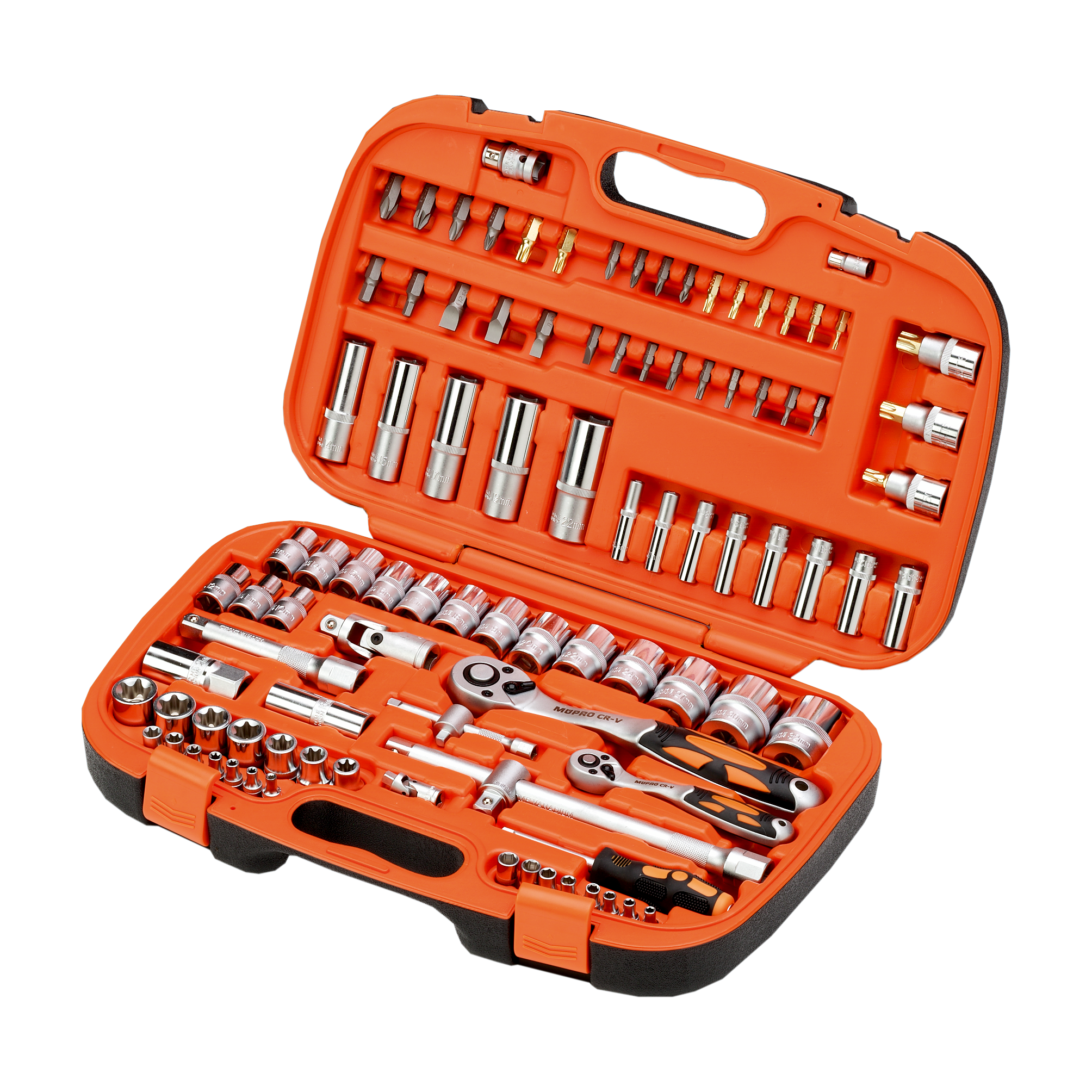 • 96-dílný kufřík s ráčnovými nástavci z vysoce kvalitní chromvanadové oceli